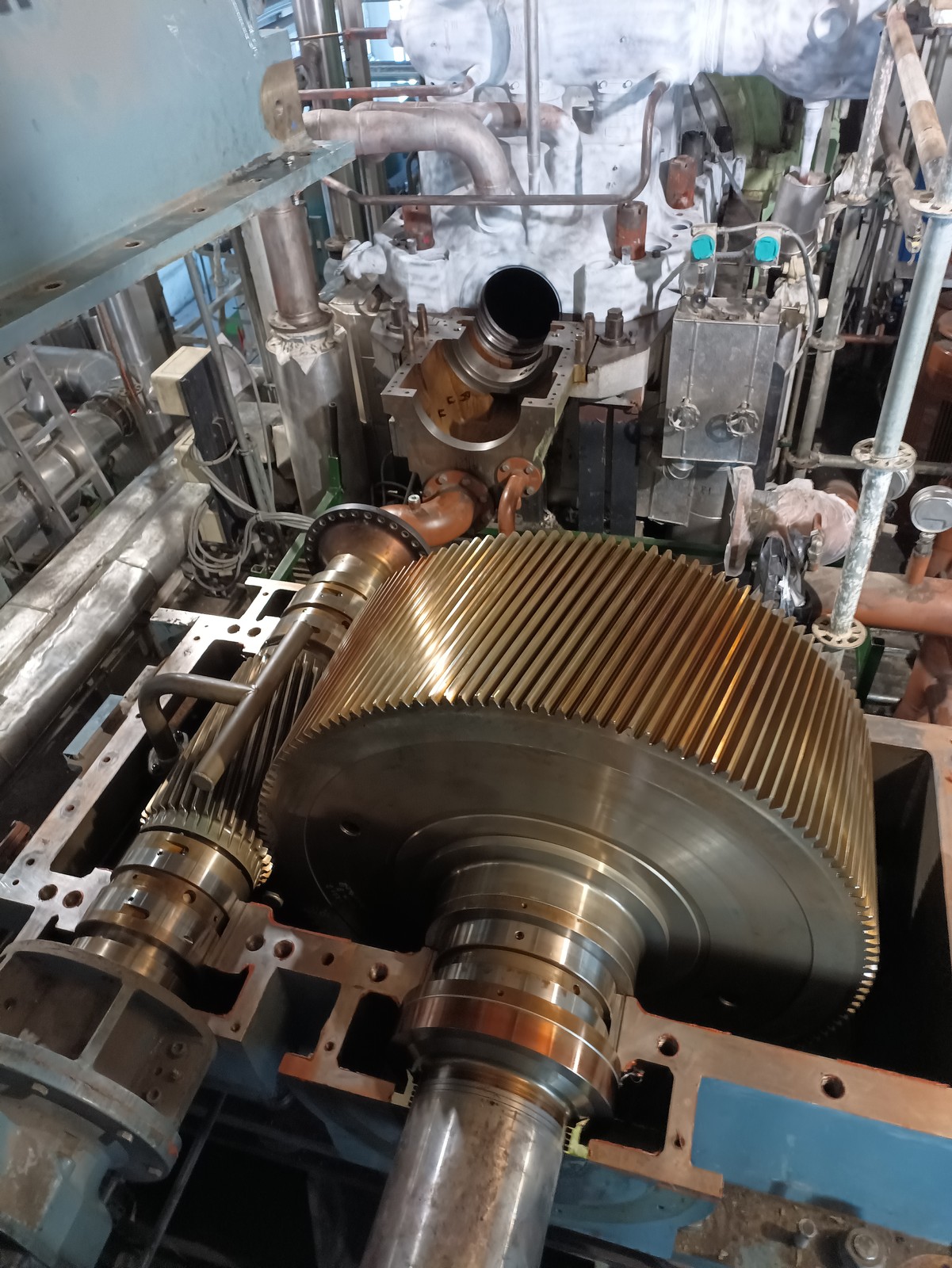 Provedli jsme detailní diagnostickou misi přímo na místě v Maďarsku u turbopřevodovky Renk TBE-710. Tato vysokootáčková jednotka s paralelními hřídeli hraje klíčovou roli při výrobě energie a přenáší výkon 22 500 kW při vstupních otáčkách přesahujících 6 300 ot/min.