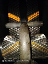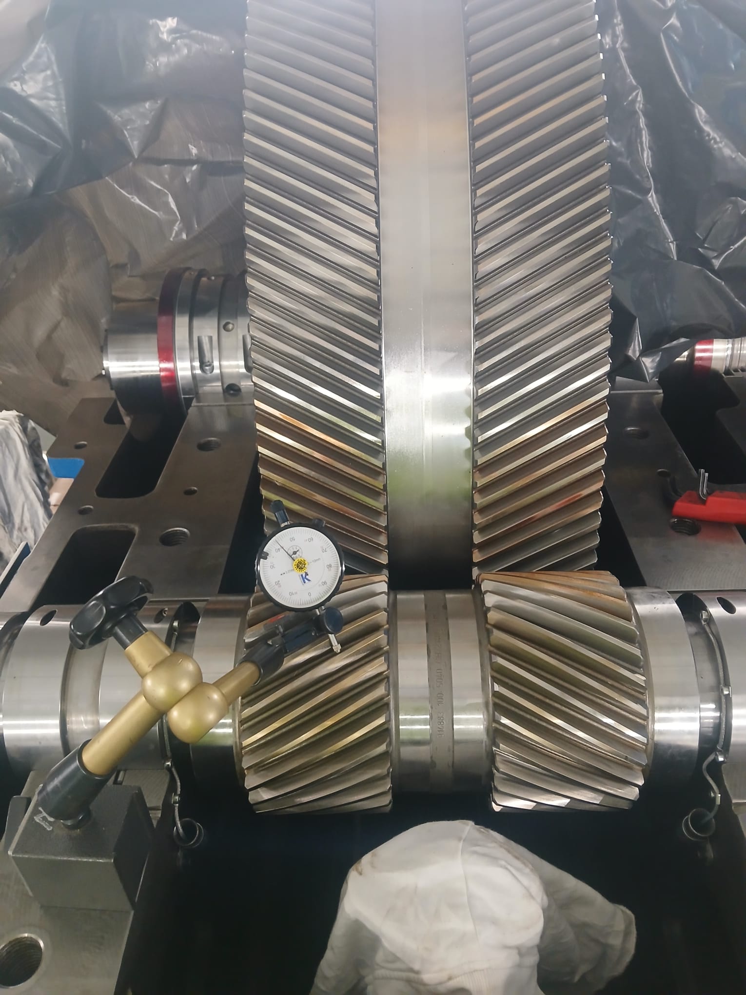Detailní analýza vysokootáčkové převodovky Renk v Chorvatsku přímo na místě, zahrnující ověření otisku ozubení, renovaci hřídelí a leštění ložisek.