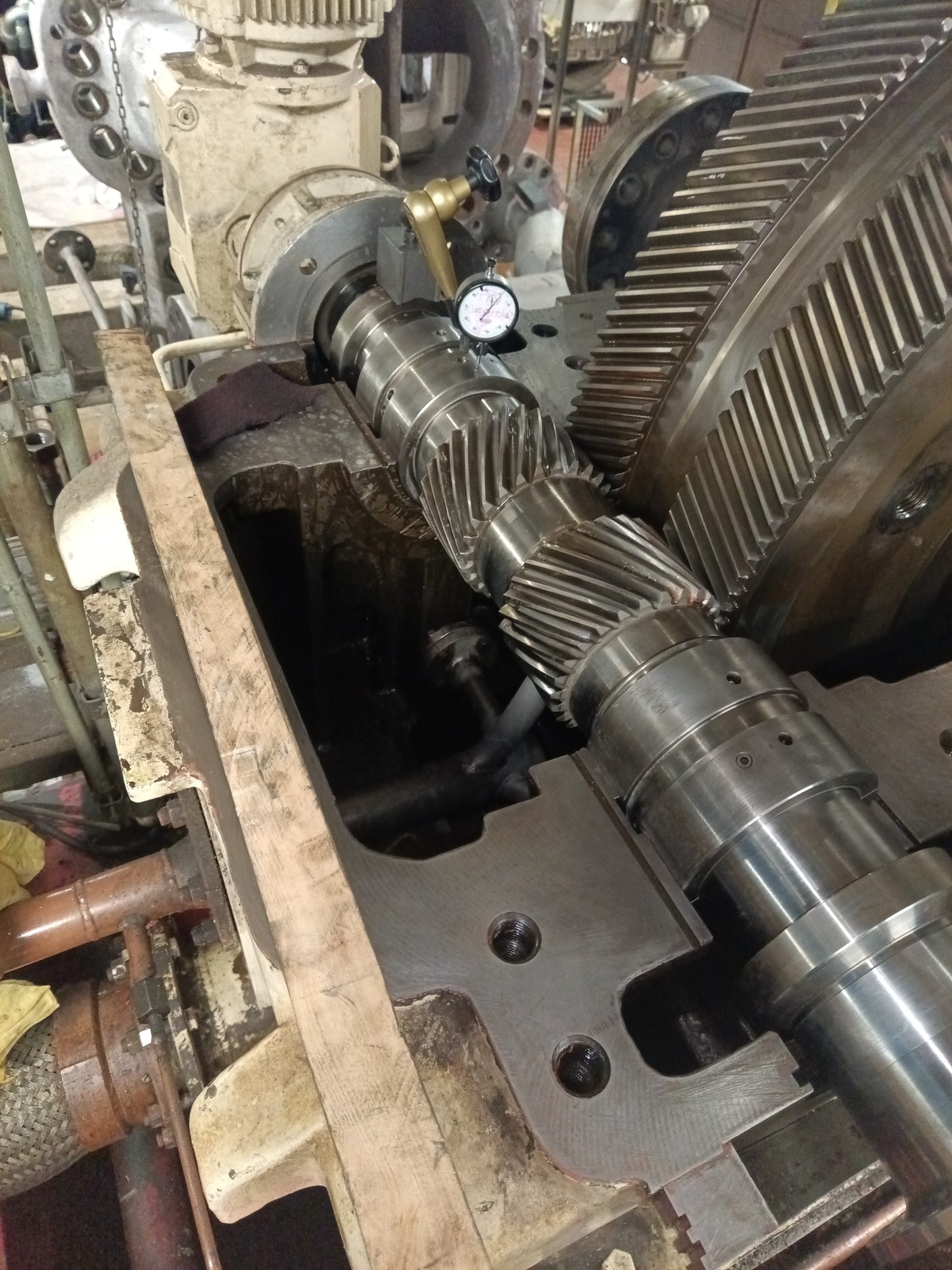Komplexní inspekce a specializované funkční testování vysokootáčkové 8 MW převodovky Renk v Polsku, zajišťující přesnou zpětnou montáž a výkon.
