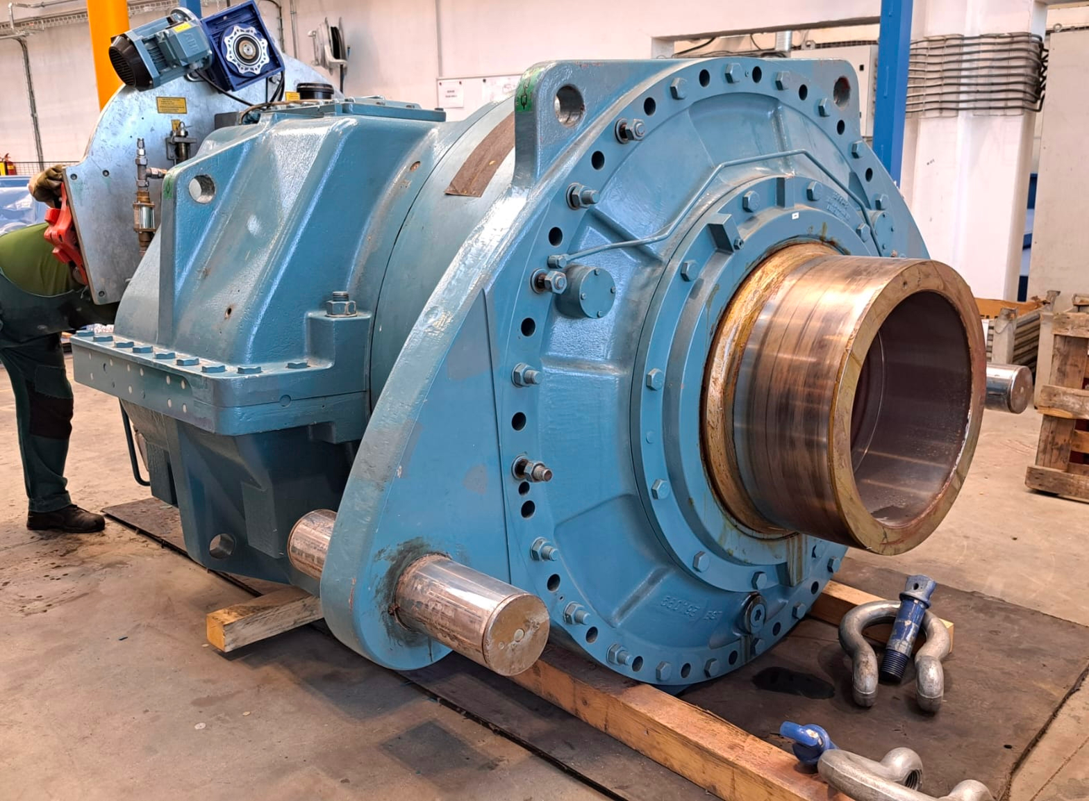 Profesionální „Plug-and-Play“ repase převodovky o výkonu 2,3 MW zahrnující upgrade na standard 4456.8, ochranu ložisek černěním a certifikovanou zátěžovou zkoušku.