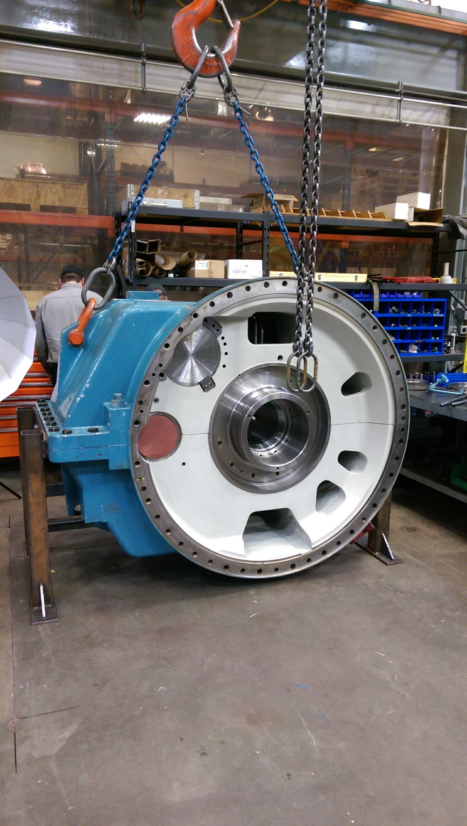 Specializovaný upgrade 2,3 MW převodovky pro americký trh, zahrnující instalaci přepracovaných planetových kol a ložisek pro zvýšení životnosti.