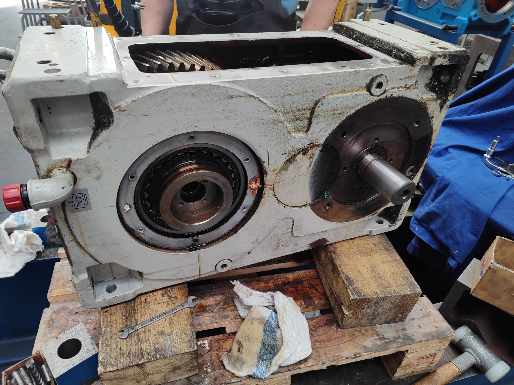 Umfassende Diagnose und präzise mechanische Instandsetzung eines Knödler-Stirnradgetriebes zur Sicherstellung der Produktionskontinuität in der Kunststoffindustrie durch gezielten Komponentenaustausch.