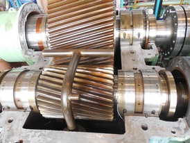 Diagnostische Inspektion eines 28,5 MW Renk Getriebes, Identifizierung kritischer Verzahnungsschäden und Verunreinigungen zur Vermeidung von Ausfällen.