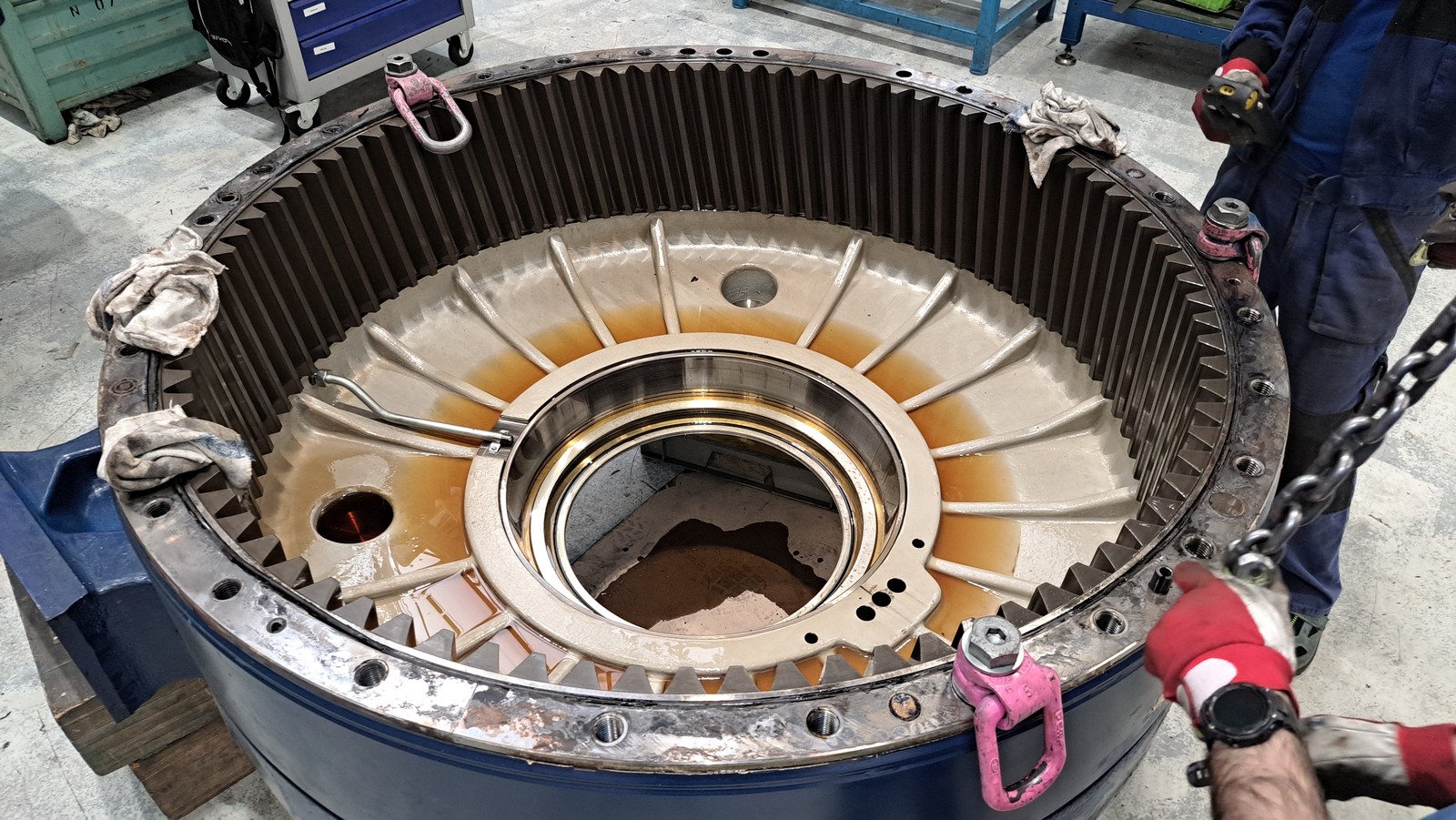 Each unit undergoes a meticulous restoration process. We perform a full bearing exchange using premium black oxide coated bearings to maximize resistance against moisture and White Etching Cracks (WEC). All gears are forensicly inspected and either precision-reworked or replaced to ensure a perfect contact pattern. This particular service scope was enhanced with the installation of a new off-line filtration system alongside a new lubrication block and electrical oil pump, significantly improving oil cleanliness and extending the life of the internals. After rigorous full-load testing and professional painting, the gearbox is supplied ready for immediate nacelle installation, backed by a complete suite of technical reports.