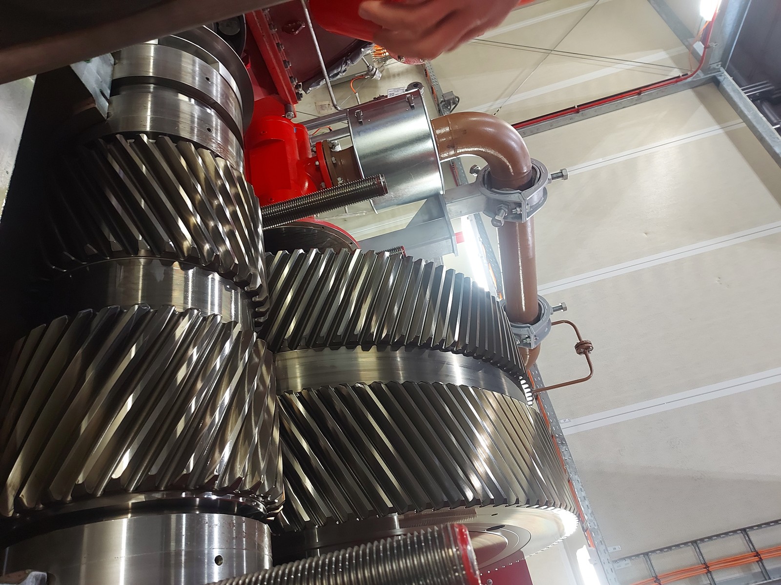 Detailed on-site diagnostics and visual inspection of a 49.4 MW Lufkin high-speed gearbox in Denmark, ensuring reliability for power transmission.